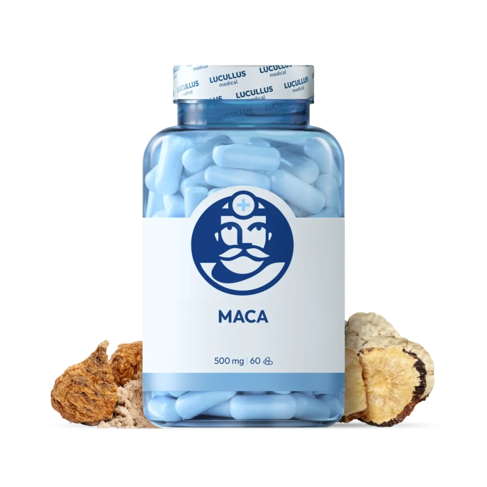 Zvýšenie energie a fyzickej výdrže — Maca pomáha zmierniť únavu a podporuje vitalitu, čo môže byť prínosné pri každodennej záťaži alebo športovej aktivite.